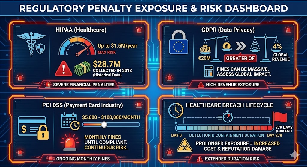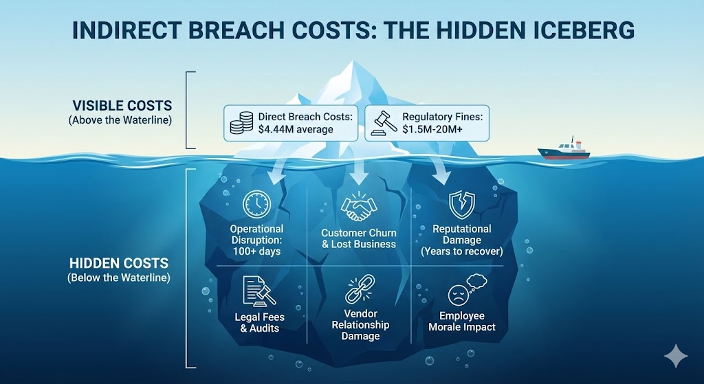 Beyond direct breach costs, regulatory fines add substantial risk: